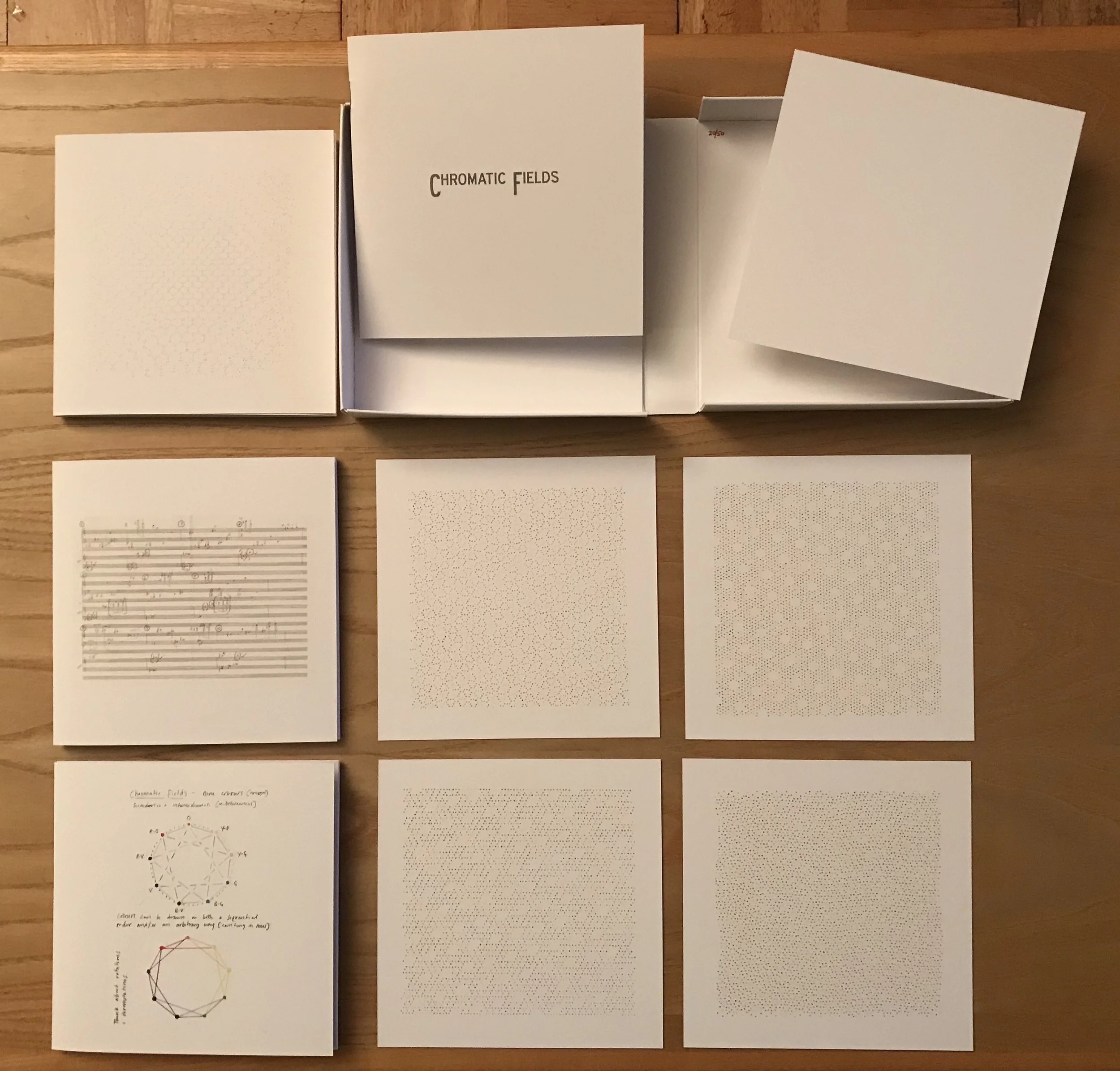 Chromatic Fields was first released as a screen-printed book and CD with accompanying drawings in 2010, and subsequently as a boxed set CD published by ANTS, Rome, Italy, in 2020.
